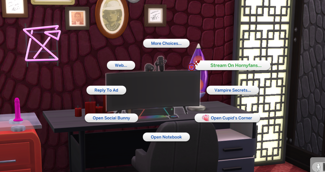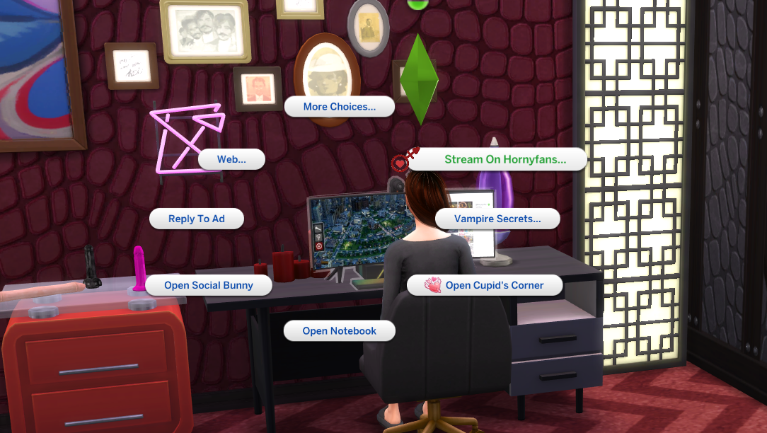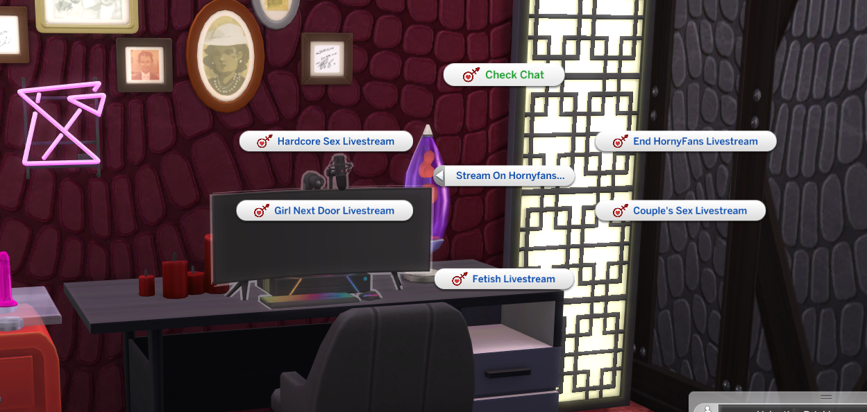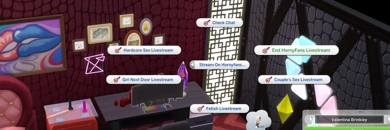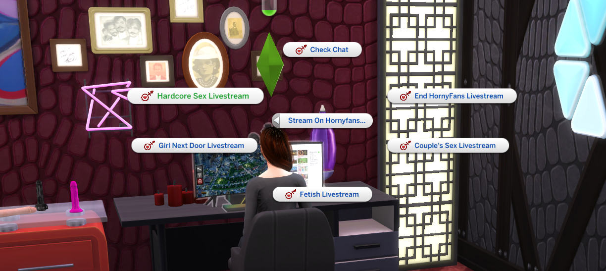 In this version of HornyFans all livestreaming is done via the computer. While livestreaming your Sim is able to move around like they want.