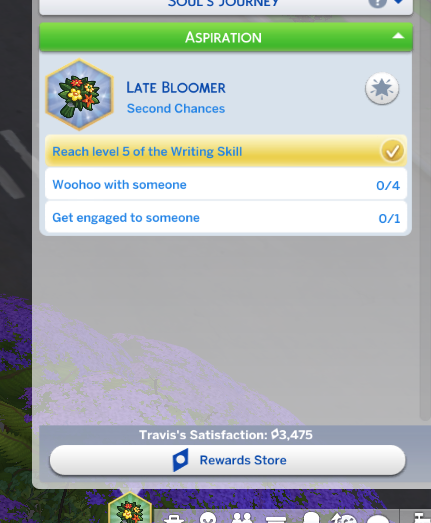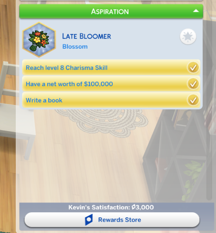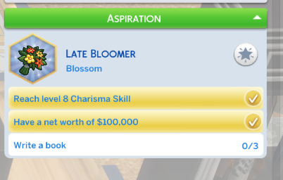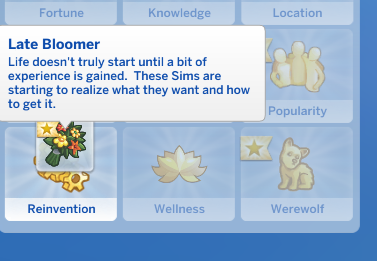 In CAS give your Sim the Reinvention Aspiration. You’ll also get the Bloom Booster bonus trait. This trait will loot random happy and inspiration buffs. Complete the aspiration for the Still Got It reward trait. This trait will make it easier to gain fun need.