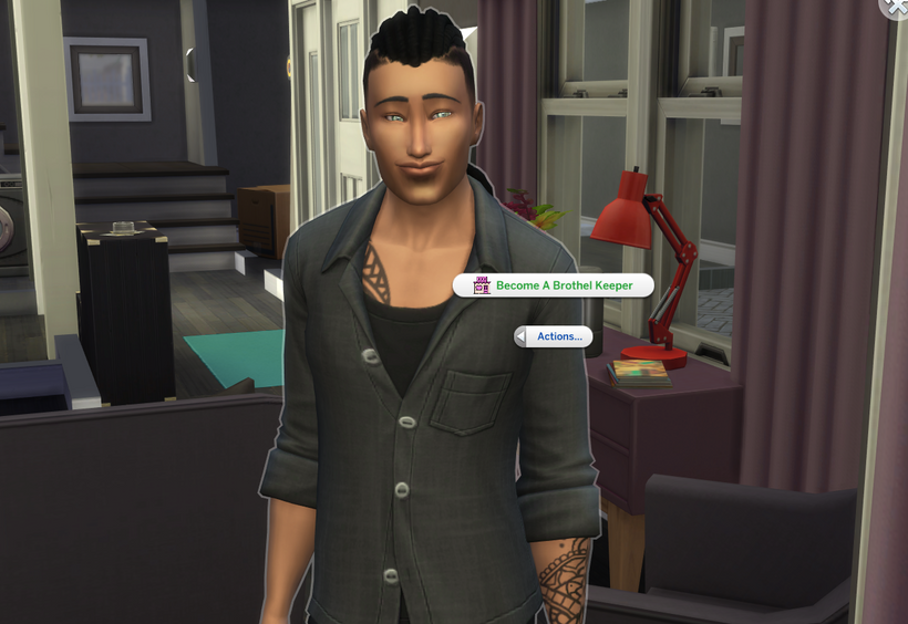 Self click on your Sim. Select the “Action” menu. Select ” Become Brothel Keeper”.