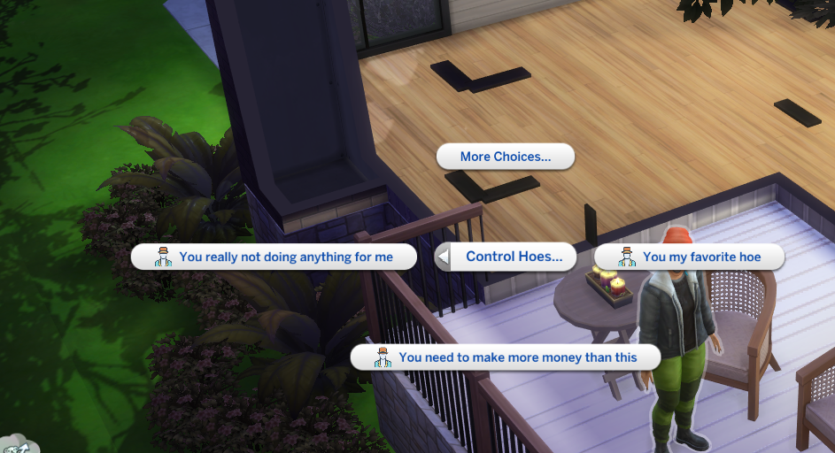 If they decide to become a hoe for you, new interaction menus will appear. You can then Control Hoes, and send your hoes on Hoe Strolls.