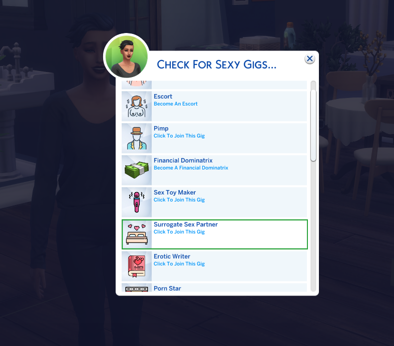 Click on your Sim and select the Sexy Gigs menu. Next click on Check For Gigs. From the list select Surrogate Sex Partner.