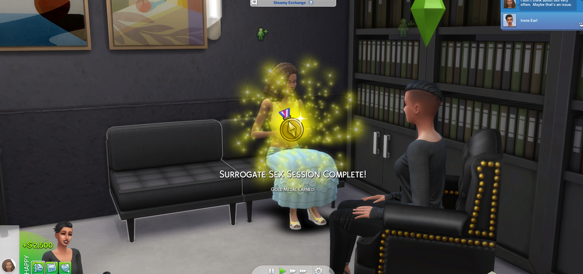 Goal the event to earn money. During the session be sure to use wicked whims or woohoo and have sex with them. This will help them learn to get over any kind of issues they revealed to you during questioning.